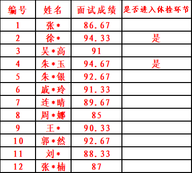一、面试成绩及进入体检人员情况